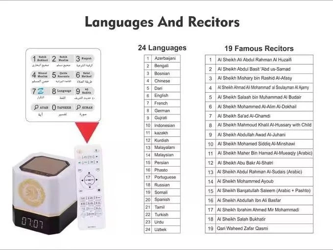 Touch Lamp Azan Clock Quran Cube Speaker QB303 Audio Bluetooth